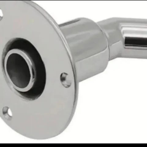 Skroggjennomføring/eksosgjennomføring for dieselvarmer i polert syrefast stål. Er dobbelt mantlet så det ikke blir varmt der den er montert. Utgang er på knappe 24 mm