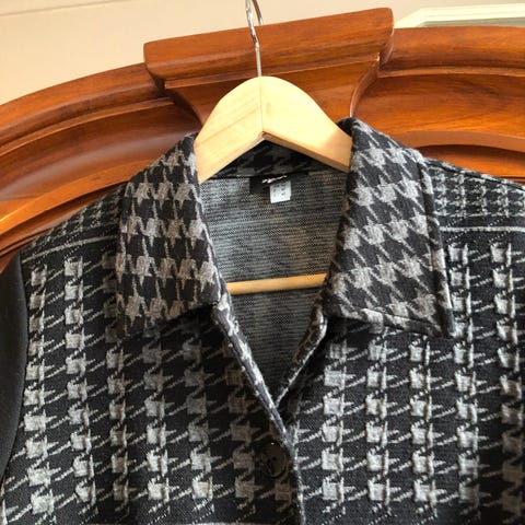 Stilig skjortejakke fra danske Soyaconcept, str, L. Jakken er en skikkelig «høydare» utenpå ensfarget sort eller beige.
