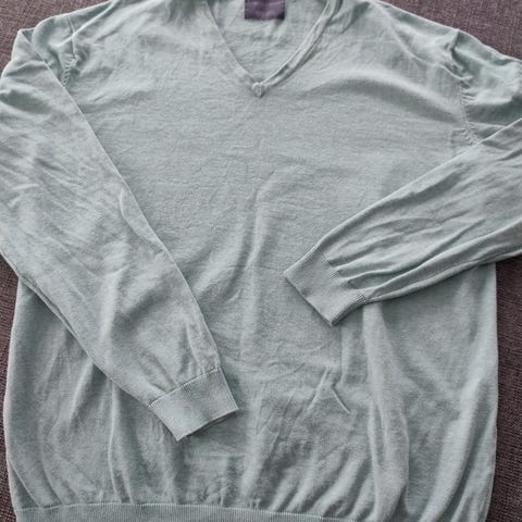 Selger pent brukt høyhalset lys beige med mønster foran genser fra Angelo Utrico for 40 kr.