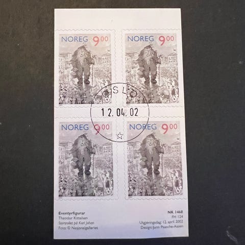 Stemplede fireblokker selges. Hk 140kr. Porto tilkommer.