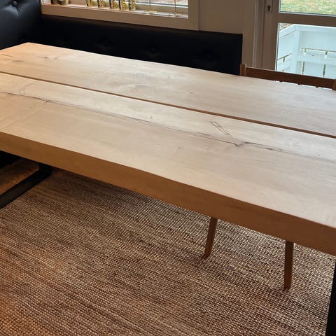 Bordplaten har fått et par bruksmerker og striper som vises mest på bildene, men selges derfor til en meget god pris. Ny pris før modifisering kr 35.000,- pluss modifisering kr 9000,- Totalt kr 44.000,-