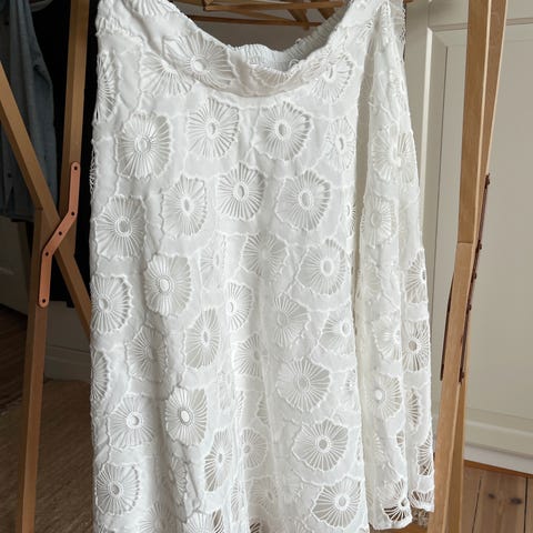Nydelig tyll og blondeskjørt fra Zetterberg. Fargen er lys beige/kremfarget. Kun brukt to ganger. Normal i størrelsen. Nypris var 4000kr. Åpen for bud.