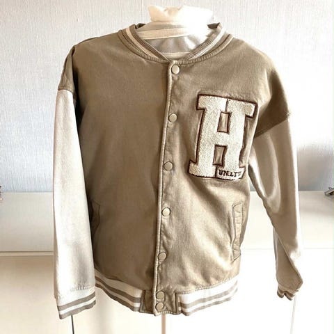 Ubrukt baseball jakke fra Jack and Jones jr, Athle jakke. Marine blå på fram og bakside og hvite armer, rund krage. Vår jakke med tynt boblefor.