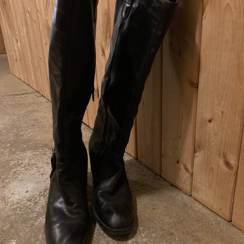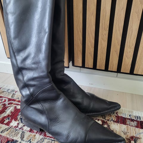 Skinnstøvletter svarte. De er ganske lange. Brukt de mest inne.