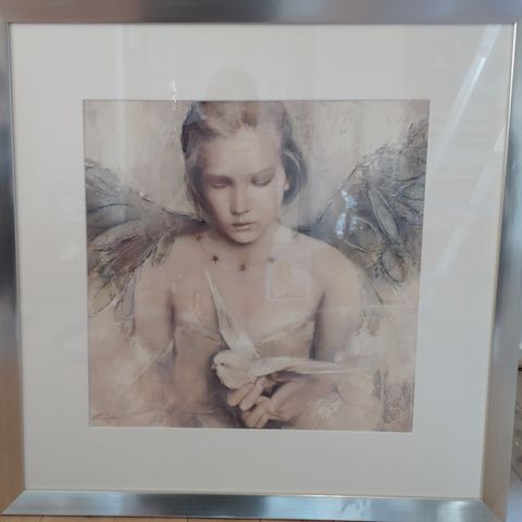 Selger et søtt bilde, en akvarell med 2 turtelduer. To fugler som koser seg i hverandres selskap.