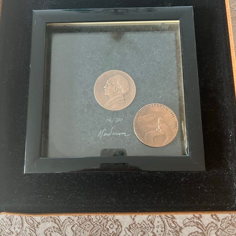 Bilder av mynt / penger fra Antikken i en fin treramme.