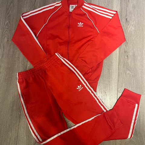 Nydelig rød Adidas bukse selges! Str 164, passer perfekt en XS/S dame størrelse 😊