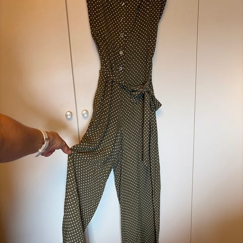 Selger min jumpsuit i str M, brunmønstret. Det er lommer i sidene. Merke: Mango