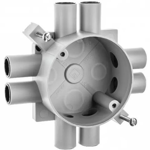 Selger Elko Brannbokser for tak (takbokser). Brannpute er montert i bakkant av boksen, og ekspanderer ved ca. 120 grader og forsegler boksen og hullet.
