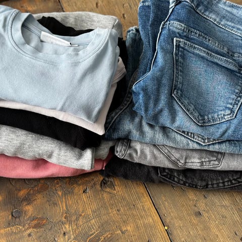 jakke, 2 bukser, 2 skjørt, 2 kjoler, shorts, bluse og 3 gensere
