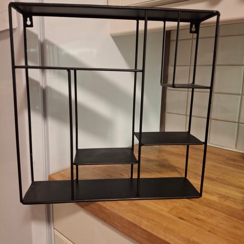 Selges da den ikke passet inn. Kan kjøpes med eller uten dekor. Hylle kr 350,-. Dekor 150,-. Kan hentes på Stord eller i Bergen.