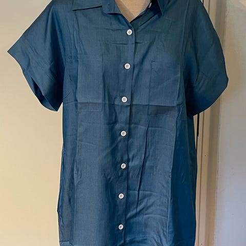 Selger denne sommerlige og fine morgenkåpa/nattkjolen/sommerkjolen med knepping i front. Antar den er fra 80/90-tallet. Står at det er str 18, antar at det er XL. Dukka er str S+