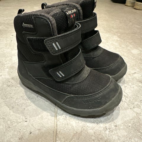 Mye bruk igjen, sålen er ikke slitt. Lurt å kjøpe brukt på så små størrelser, da slitasjen er minimal. Varme og gode til vinteren kommer.