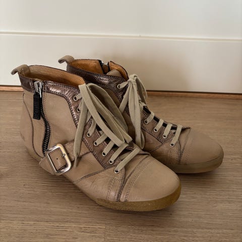 Sko fremstår rene og pene. De har i flere år stått i skapet og blitt for små 😅. De kan gjerne smøres inn med fett av noe slag. Da vil de bli noe mørkere, men mykere. Tror det er 37- 371/2