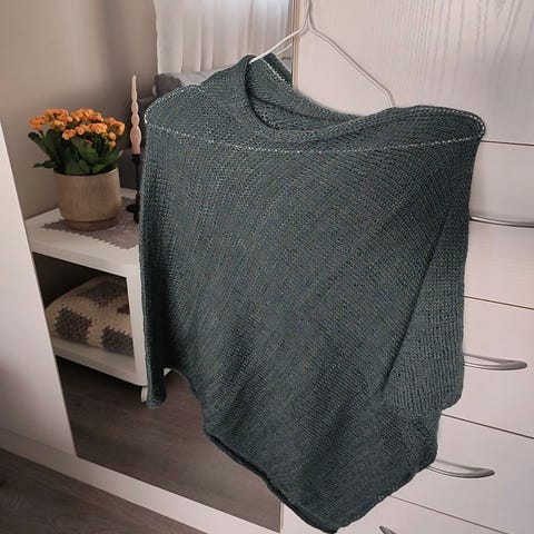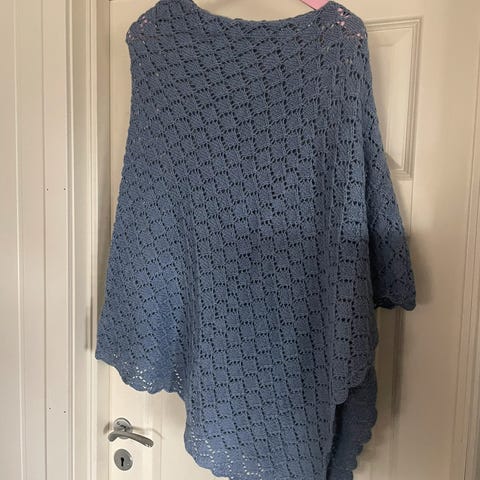 Ubrukt hjemmestrikket poncho I det nydelig Sandnes Alpakka. Fargen Natur. Den er Onesize. Kun brukt en gang m da jeg følte den ikke passet helt på meg.