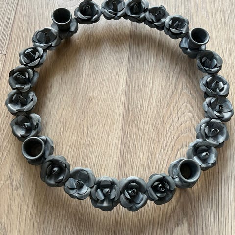 Pent brukt lysestake med plass til 4 kronelys. Kan brukes hele året eller som adventskrans.