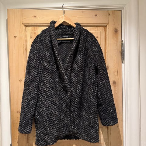 Lang Cardigan fra by Malene Birger, modell Belinta. Sort i str xxs.