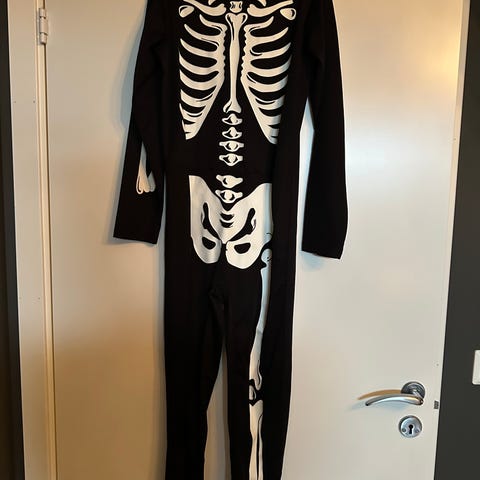 Søtt skjelettkostyme med glitterdetaljer. Meget pent brukt, brukt en eller to ganger.