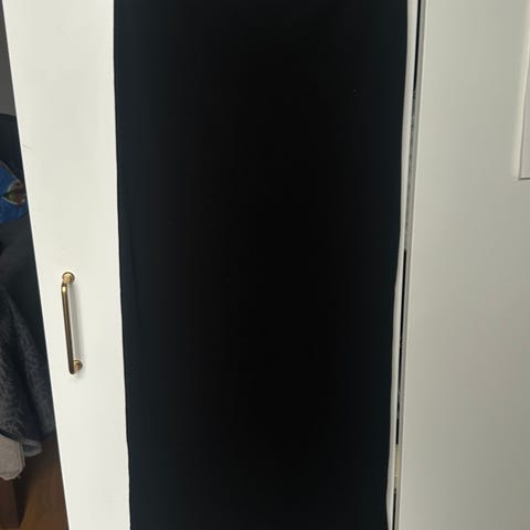 Fotsid svart « silke « skjørt , St 34 ( vil si det heller er St 36 ) A form. glidelås i siden , og en stor splitt i den ene siden , kanskje brukt to ganger , passer dessverre ikke lenger til meg.
