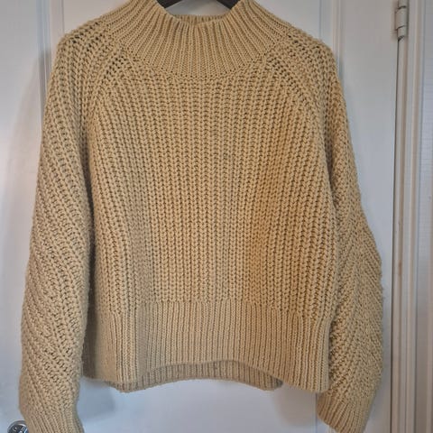 Casual strikket genser med gulltråder (Numph), str. XL; veldig fin stand:) ingen flekker eller skader; myk garn som ikke klør - 18% ull, 9% mohair, 50% akryl, 14% polyamid, 9% metallic tråd;