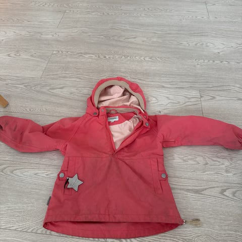 Pent brukt kåpe fra Mini a ture,strl.122.Brukt 2 sesonger.Brukt til og fra.Vasket en gang før ikke nå etter siste bruk.Kan sende.