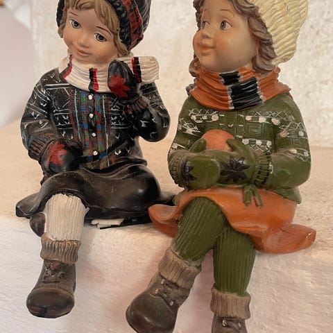 Selger disse nissene sittende på en benk fra firkløveren. Mulighet for å legge inn stor fyrstikk eske under. To av nissen har gått opp i limet. Og en liten bit i det ene hjørnet er knekt av og det ene hornet til halmbukken er knekt av men følger med og kan limes på. Kan sendes mot porto.