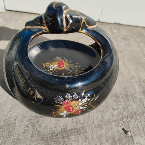 Kr 120 porselenskurv 120 år gammel H=14 cm rosedekor+ ekte gull.