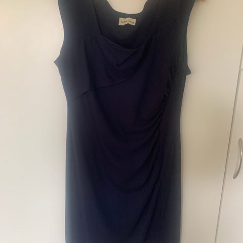 Fin mørk blå ballongkjole, str 36, av merke Duva. Kjøpt for en del år siden, men hel, ren og fin. Stilig med draperinger og fin utringning.
