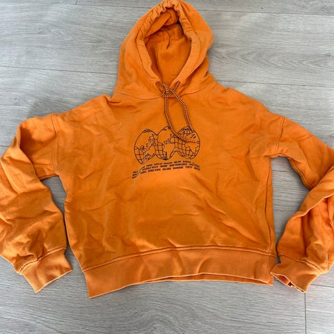 Fin hettegenser i lys gul/beige farge.