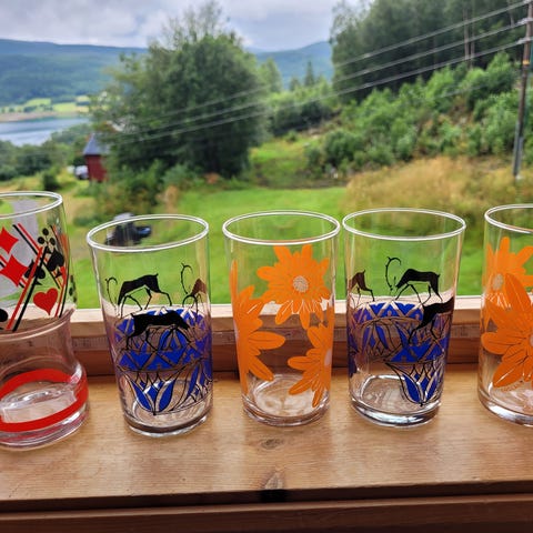 3 stilige drikkeglass med hank selges samlet for 125kr.