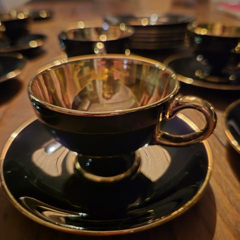 6 kaffekopper / med fat, asjetter. Stavanger flint