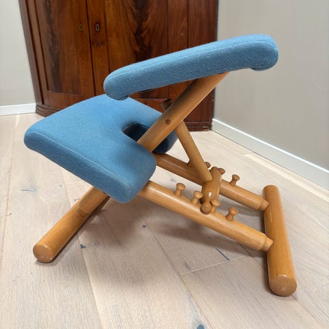 Stokke balansestol til salgs, genial for skrivebordsarbeidende- både barn og voksne. Denne stolen fremmer en aktiv bruk av kroppen som gir energi og overskudd. Ergonomisk kontorstol.