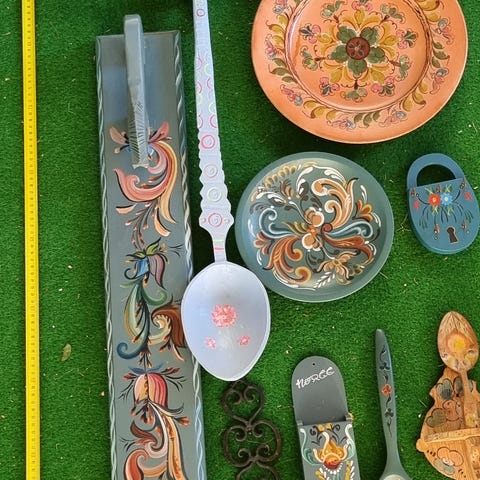 Selger pyntefat og asjetter, kun hengt på veggen på hytta. Selges kr 100 + porto. Kan event hentes i Drøbak.