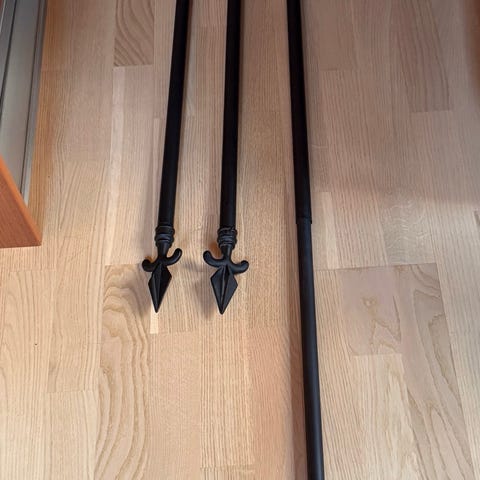 Gardinstenger 120-200cm og 160-300cm selges. Åpnet, men ikke brukt.