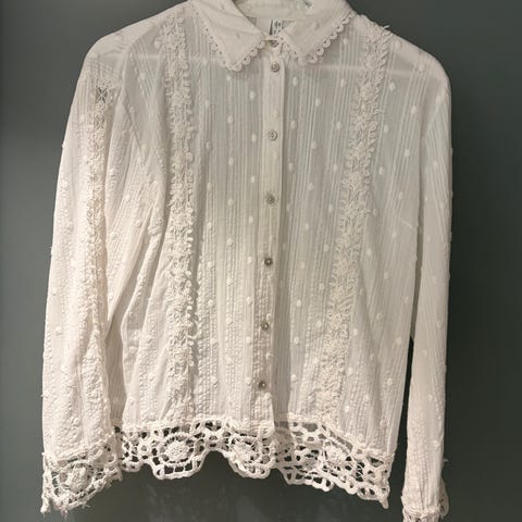 Selger min pent brukte blondebluse fra Lexington🤍 Størrelse large og er ganske romslig i størrelsen.