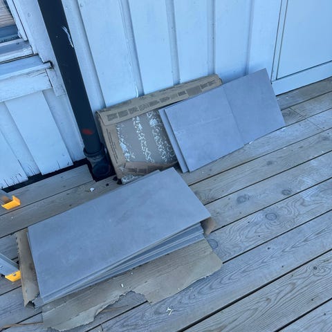 Blanco Brillo 30x60 Fliser ca 32,2 ,m2 Jeg kjøpte den etter at jobben min var over, den er resten, jeg skal solg den billig 121kroner per 1 m2.