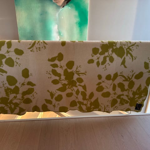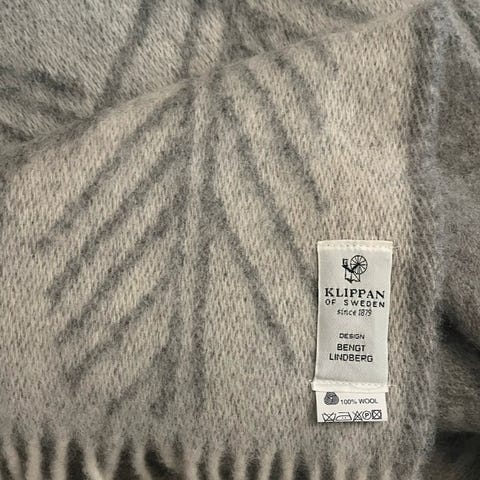 Et pledd i myk merinoull (100 %) fra svenske Klippan. Fargen er ensfarget svart. Kvaliteten er lett og behagelig. Fine frynser. Pleddet er helt og rent. Perfekt å ha liggende i godstolen eller sofakroken - eller det kan brukes til redesign.