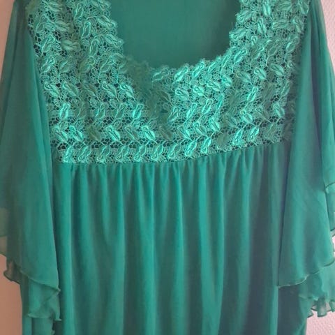 Nydelig sommerkjole fra Zanca Sonne i Danmark selges da den ikke blir brukt. Helt ny, men ikke lapp. Onesize, så passer alt fra S-XL pga belte. Flaggermus-ermer og pene blonder.