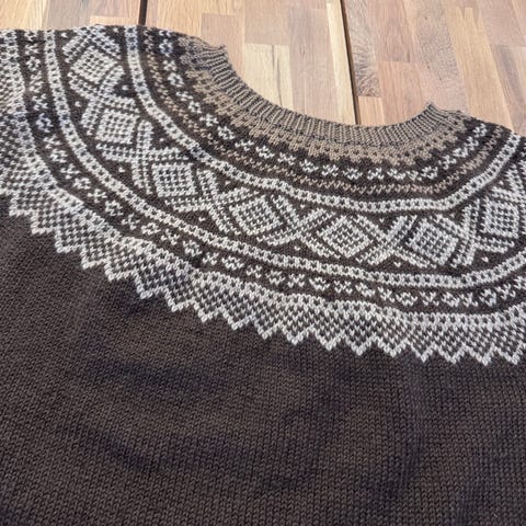 Genseren er fra noen år tilbake, men nesten ikke brukt. Den sitter fint på og er stor/vid i halsen. Baksiden er noe lengre. Det står medium inni den, men den passer Large-XL