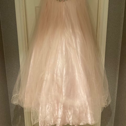 Helt ny brudekjole/ballkjole selges. Nydelig hvit/beige farge med noe skimmer.