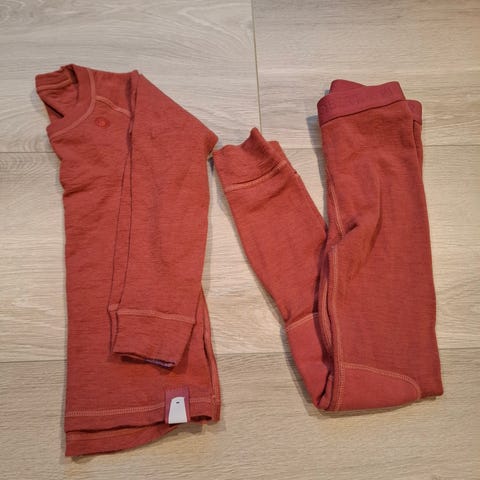 Lite brukt, men det har komt noen flekker, samt nupper i sømmer. Trøye 122/128, tights 110/116. Kjøpt og brukt samtidig.