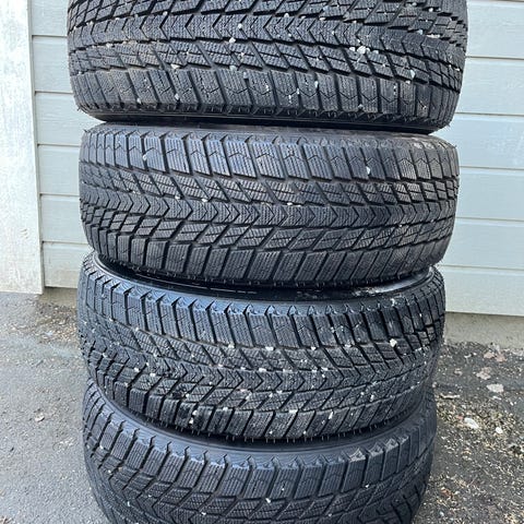 Jeg selger 4 dekk vinter pigg frie , mønster dybde 2 dekk 7.0 mm å 2 dekk 6,5 mm , men har 1 dekk punktering. Plugget innvendig OBS. Helt ok. Product år 1418 .
