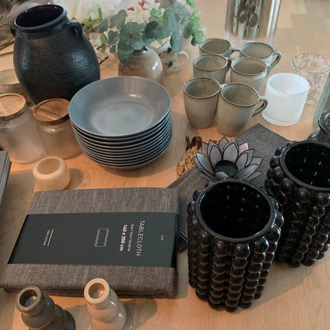 Kurv og tepper solgt. Biopeis og lykt til tre kubbelys.