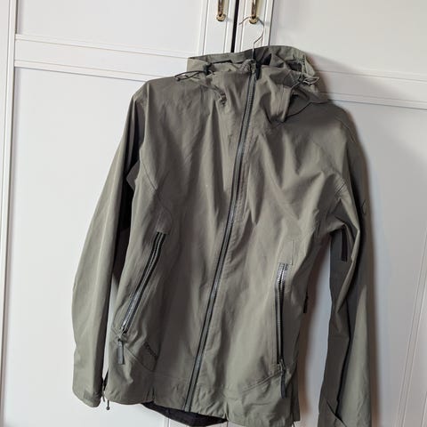 Hel og pen , lilla med rosa linning . God passform , tynn og lett jakke