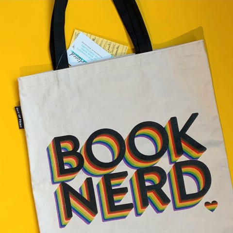 Book Addiction handlenett, ubrukt, kan sendes. Det et ca. 31cm bredt og 36cm høyt. God plass til bøker og stash :) 149,- + frakt.