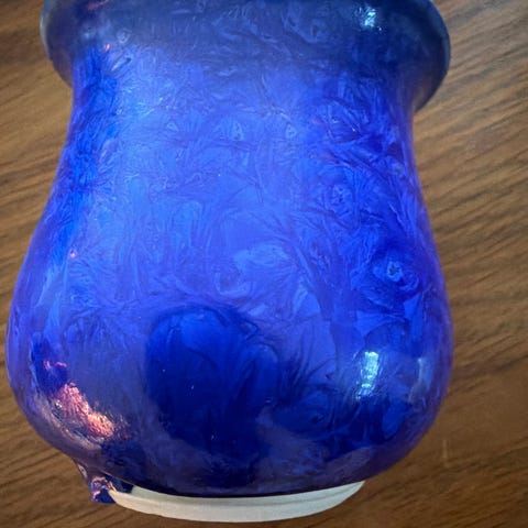 Vasen er i heil og fin ingen nagg noe krakelering som er lite synlig
