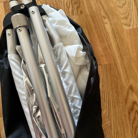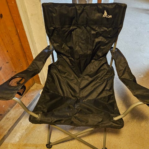 Sammenleggbar krakk. Fin å ha med på tur. Tar lite plass. Robust, men lett. Bærbar, pose følger med. Sittehøyde 48 cm.