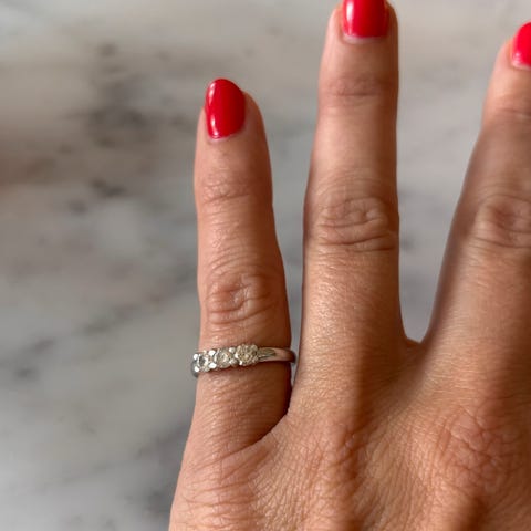 Vakker ring i hvitt gull med 7 diamanter. Selges i butikk for kr. 19.975,-.