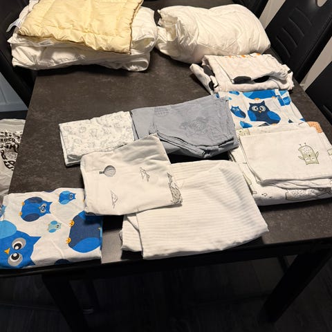 Babydyne, pute, laken, sengetøy