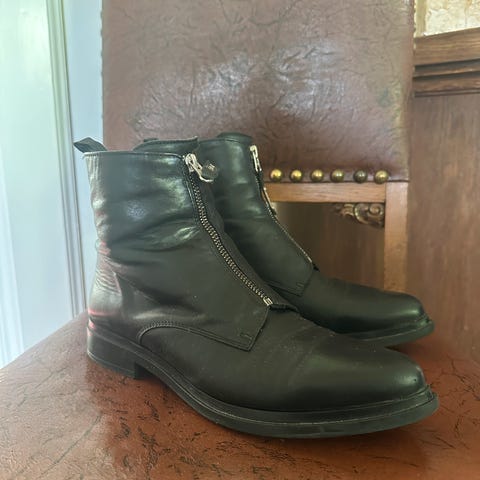 Høye skinnstøvletter i str 37, ble litt for store for meg, så brukt kun et par ganger.